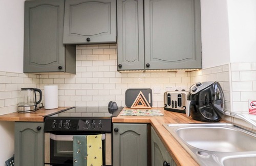 The kitchen is equipped with a refrigerator and a dishwasher, as well as an electric kettle, cookware, and a toaster. Other amenities at this 2-bedroom, 1-bathroom rental include heating and wardrobe or closet.