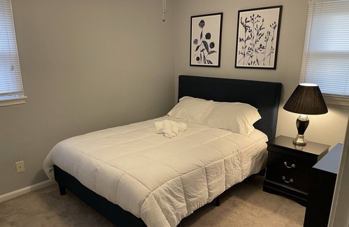 Quiet, convenient. 3 Queen size memory foam beds. Comfy couch and reclining chair. Nice kitchen space with Refrigerator, Stove, Microwave, Keurig coffee maker, dishes, flatware, glasses.