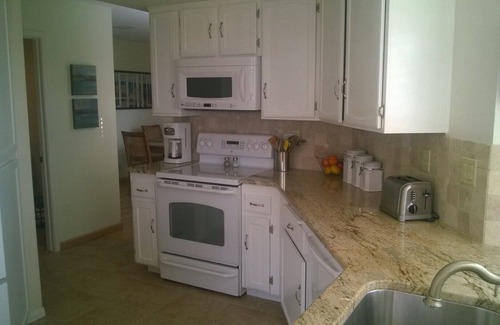 Our kitchen is fully equipped, with new appliances, granite counter tops, Bosch dishwasher, double stainless sink. Most routine supplies are furnished (dish detergents, cleaning supplies, paper towels,spices etc.) The breakfast eating area is surrounded by windows and perfect for waking up in the morning while watching the hummingbirds.