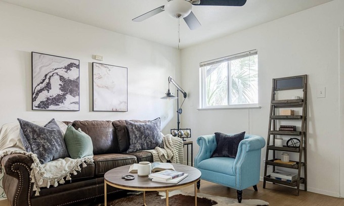 Nestled in Austin, this 1-bedroom, 1-bathroom apartment brings it all within your reach. Fans of nature and the outdoors will love being 5 minutes by car from Sixth Street and 6 minutes from South Congress Avenue. With convenient nearby parking, you'll be ready to make the 5-minute drive to Austin Convention Center or the 22-minute drive to Lake Travis.