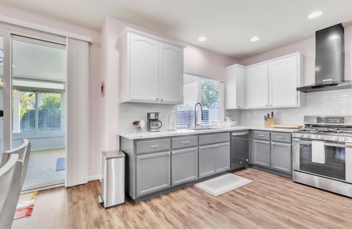 Bring your friends and Family to this quiet cul-de-sac retreat with room to spread out. Bright two-story layout connects a spacious living/dining area, full kitchen, an enclosed sunroom—great for games or extra hangout space. Enjoy the covered patio and big fenced yard. Bedrooms offer comfy beds and blackout shades; multiple baths make mornings easy. 20 min to Downtown Sacramento and 15 min to Historic Folsom, Folsom Lake, and the American River Parkway—near parks, groceries, and everyday needs