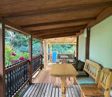 Food & DrinkTea/Coffee makerBathroomHairdryer, Shared toilet, Shower, Toilet paperMedia & TechnologyFlat-screen TV, TVActivitiesHot tubGeneralFire extinguisher, Ironing facilities, Private entrance, Heating, Iron, Trash cansOutdoorsOutdoor furniture, Balcony, Outdoor dining area, Barbecue, Terrace, PatioKitchenWine glasses, Stovetop, Kitchenware, Oven, Dining table, Kitchen, Refrigerator, Washing machineLiving AreaFireplace, Dining area, Sitting area, SofaBedroomChildrens' cribs, Extra long beds (> 6.5 ft), Wardrobe or closetViewGarden view, Mountain view, View, Landmark viewAccessibilityEntire unit located on ground floorBuilding CharacteristicsDetachedRoom AmenitiesSofa bed, Socket near the bed, Clothes rackPool and SpaPlunge Pool, Pool towels |