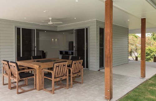 Purpose built holiday home set in magnificent gardens on a huge 1000m2 block in a quiet street only minutes away from shops, restaurants and the best of the Sunshine Coast beaches. Your complete 'home away from home' with everything you would need to simply turn up with your suitcase and have everything here for you to relax and enjoy Sunshine Coast living at it's finest. The back yard has pool fencing. Check the photos for more about the fenced area.