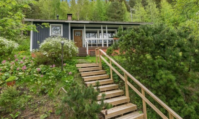 Please agree the payment with the owner before you charge the electric car from an outdoor socket. Slope from cottage to the shore. From the parking lot stairs down to the cottage yard. A farm 500 metres away, with domestic animals hens, cat and dog. 3 fishing permits included in cottage prices.