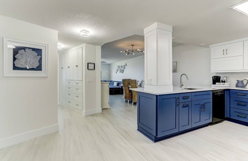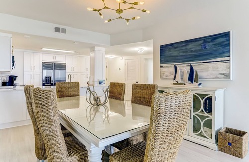 Fantastic ocean views await you from every room in this beachfront condo, just steps from the heated pool and beautiful beach. This completely remodeled 2-bedroom, 2-bath condo in Turtle Dunes is one of only a few condos in this building with private oceanfront balconies off BOTH bedrooms. Located near the stunning Omni Amelia Island Resort, it provides everything for a luxurious and relaxing getaway. Nothing has been overlooked, from essentials to luxury linens and top-of-the-line appliances and furnishings. The unit has a full-size washer and dryer, convection oven, microwave, dishwasher, Keurig coffee maker, lots of pots and pans, entertaining platters, and serve ware. Each bathroom has soft, fluffy towels, washcloths, bathmats, organic shampoo and conditioner, body soaps, and lotions. Hair dryers, clothes steamer, and luggage racks are also provided. A separate exterior closet is loaded with every beach item imaginable. From Tommy Bahama beach chairs and umbrellas, a cooler, microfiber beach towels, bocci balls, boogie boards, toys, shovels, and a beach cart to conveniently take these items to the beach. High-speed wi-fi is provided, as well as USB charging ports and multiple outlets for all your electronics on every nightstand so you can stay charged and ready to go. An electric fireplace in the living room with a picture TV mounted above gives just the right ambiance when sitting on the wrap-around sofa, making relaxing and listening to the waves or entertaining with family and friends extra special.