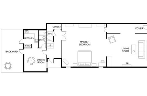 **The living room and bedroom has doors, but if a guest is sleeping in the living room pull out couch, in order to get to the bathroom, you will pass the King bedroom, space- so we provide room divider/screens, but understand this and only book if you are a family, friends, or a couple and understand this open concept. (See floor plan in images).