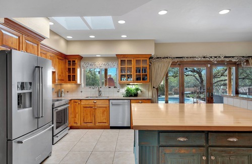 Step outside to the expansive backyard. Dive into the heated pool, or unwind in the unique treehouse. As the evening sets in, the fire and ice table and outdoor chiminea create a magical ambiance!