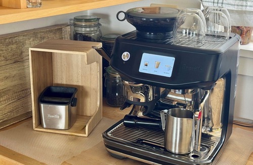 Our chef's kitchen is built for family and friends to gather around our huge kitchen island and counter-space and comes with a Wolf gas range/double griddle/2 ovens, a Breville Oracle barista coffee maker, kettle, new microwave, a Breville air fryer/toaster oven, a Thermomix blender, Cafe 2-drawer dishwasher, and several chef’s appliances. We make your stay easy and convenient by supplying basic pantry items, condiments, cleaning, and other amenities. Our in-house H3 washer/dryer adds convenience, as does ample free & safe street parking. EV charging is also possible during your stay with our driveway connection available.