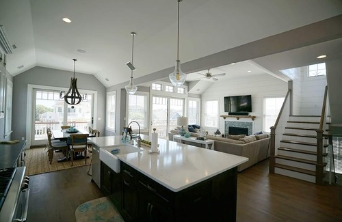 This beautifully appointed beach home, located in the Little Egg Harbor section of Beach Haven, has an optimal reverse living layout for your family vacation with spacious indoor and outdoor living areas. We invite you to our newly built house which boasts a gourmet kitchen, 5 bedrooms, 4.5 baths, heated in-ground pool, gas firepit, outdoor covered bar with television, outdoor shower, elevator, and multiple decks. There are hardwood floors, 9' ceilings with ceiling fans in all rooms with Restoration Hardware and Pottery Barn furnishings throughout. The house offers enjoyment for everyone in your family - relaxing on the deck, swimming in the pool, chatting by the fire pit, grabbing time on the beach, going for a run, playing a friendly game of foosball.