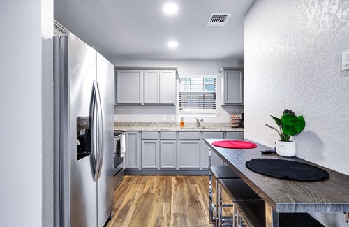 Welcome to your dream retreat in the heart of downtown San Antonio! This newly renovated 1 bedroom, 1-bath home is an urban oasis that's centrally located between the Frost Center, Freeman Coliseum, and the Alamodome. With its modern amenities and unique decor paying homage to Nike sneakers, you'll experience comfort, style, and convenience like never before. Step inside and discover the perfect blend of modern luxury and artistic expression.
