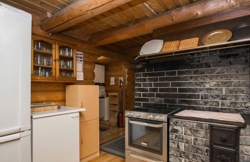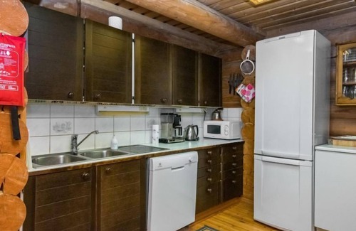 Log cabin 1990, kitchen, a large living room. Ground floor: bed room (sliding door) bed 120 cm wide, lounge with fireplace sofa bed, sauna (electric sauna stove), washroom, toilet, veranda.
