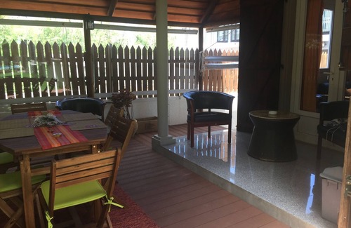 The accommodation is peaceful with its veranda very ventilated during periods of high heat. The garden with its coconut and banana trees. The swimming pool to relax after a good day goes to the beach.