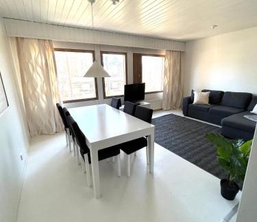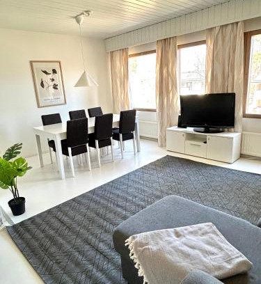 Rauhaisa rivitalo kolmio saunalla provides a sauna and free private parking, and is within 2.2 miles of LähiTapiola Areena and 2.5 miles of Alvar Aalto Museum. The property is around 3.1 miles from Jyväskylä Train Station, 3.3 miles from Jyvaskyla Bus Station, and 8.7 miles from Säynätsalo Town Hall. Lounaispuisto is 2.6 miles away and Jyväskylä University Library is 2.7 miles from the apartment. Providing a terrace and inner courtyard views, the spacious apartment includes 2 bedrooms, a living room, flat-screen TV, an equipped kitchen, and 1 bathroom with a shower. Towels and bed linen are provided in the apartment. The property has an outdoor dining area. Hipposhalli is 2 miles from the apartment, while Jyvas Golf is 2.2 miles away. Jyvaskyla Airport is 14 miles from the property.