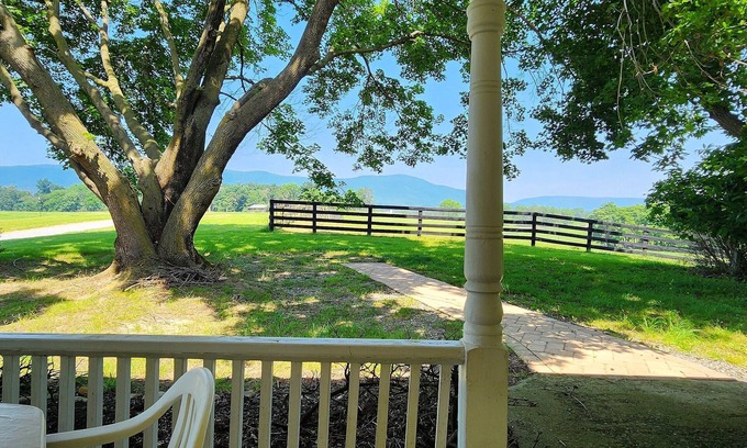 The Ranch House features a nostalgic country decor and has a large kitchen with a 6ft. island and 12-person table, comfortable family room, formal dining room, five bedrooms and two full baths. Linens and kitchenware provided, as well as flat-screen cable TV. There is a playground in the side yard, and plenty of lawn space, making this a wonderful spot to spend quality time with family and friends! Fire pit and gas grill - firewood and propane provided. Guests at River’s Bend Ranch can enjoy fishing, birding, scenic walking trails, and horseback rides along our stretch of the Shenandoah’s South Fork—open to all ages and abilities. With easy access to Luray Caverns, Skyline Drive, the town of Luray, hiking, kayaking, and more, there’s something for everyone. Kids (and adults!) will love meeting our farm animals, including sheep, cows, chickens (and sometimes baby chicks!), horses, barn cats, and our friendly, attention-loving dog.