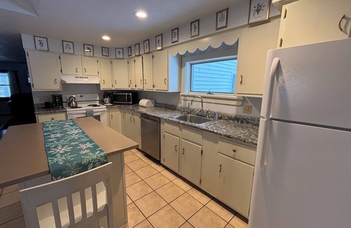 The first floor has the second full bath, and one large main bedroom with a king bed and pullout couch. The main bedroom also has a pack ‘n’ play for toddlers, a rocking chair, a large beanbag chair, and a library stocked with books of every genre for any age. Each bedroom is equipped with a tv, wifi, fresh linens, and plenty of blankets and pillows. The first floor also has a living room, a large family room, as well as a spacious kitchen. The family room includes a substantial set of Legos with their own table, and Melissa and Doug toys and train set that are discretely tucked away.