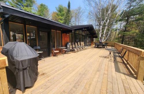 Red Cedar Chalet on Brady Lake provides a sauna and free private parking, and is within 31 miles of Santa s Village. The chalet has a terrace and a hot tub. Providing a patio and lake views, the spacious chalet includes 4 bedrooms, a living room, flat-screen TV, an equipped kitchen, and 2 bathrooms with a walk-in shower and a hot tub. Towels and bed linen are provided in the chalet. There's also a seating area and a fireplace.