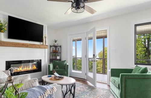 Large upper wrap around deck with rocking chairs, swing, high top table and chairs, and screened in porch with table and chairs. Below is a covered deck with a sitting area, hammock, and birdcage swing. There is also a charcoal grill, Breeo firepit with Pollywood chairs (we provide starter firewood), and cornhole boards. We provide several binoculars and bird watching books if you want to wake up early to see the forest come alive around you.