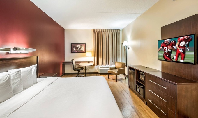 Red Roof Inn PLUS+ Austin South offers 137 accommodations with complimentary toiletries and blackout drapes/curtains. 40-inch flat-screen televisions come with premium cable channels.