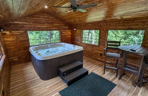 This recently renovated cabin is located high in the Blue Ridge mountains at around 3,000 feet elevation. It is in the same area as the Shenandoah National Forest and this property borders the park land. You will not see another human being for a half mile in any direction, but you'll see plenty of deer, bear and wildlife! Inside the cabin, you'll find spacious living areas, comfortable bedrooms, a fully stocked kitchen, fast Starlink internet, and large HD smart TVs.