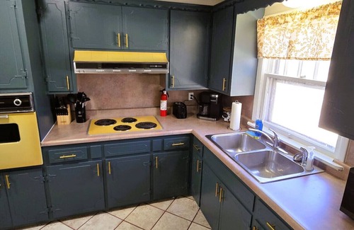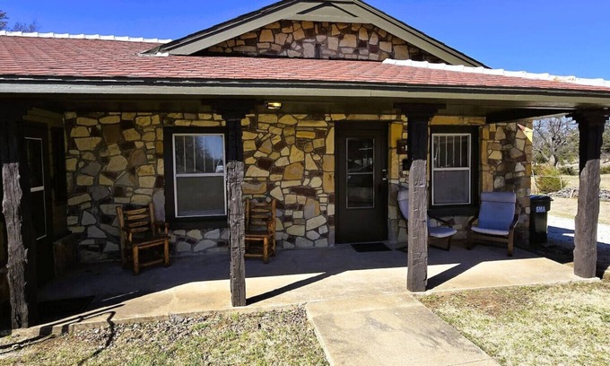 Located in the heart of Sulphur near restaurants, shopping, and outdoor activities, this retro cottage sleeps 5 comfortably, but has fold outs available to sleep 8 if needed. Newly remodeled to showcase it's cozy mid-century appeal. Enjoy an evening playing pool by the stone fireplace in the game room, cooking a meal with friends and family in the fully equipped kitchen, get work done in privacy with a view of the pond out back, or head out and enjoy the National Park and waterfalls nearby.
