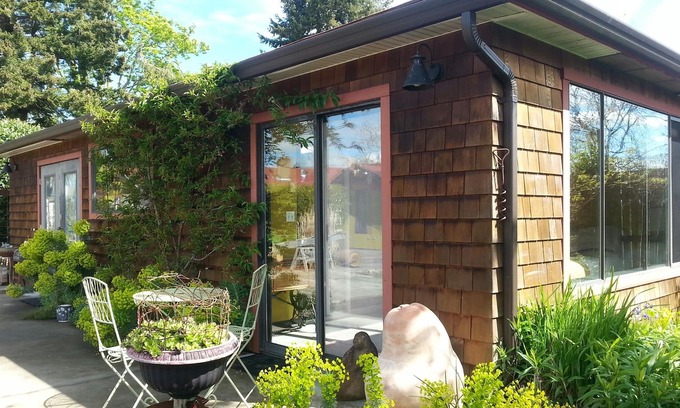 Our cottage is just across from the beach with biking and walking trails, bird sanctuary, restaurants, coffee shop, family-friendly activities, nightlife, corner store with liquor sales, neighborhood pub, and spa/resort. Enjoy the opportunity to unwind, relax and engage in seaside activities or venture into nearby towns and villages to enjoy their own unique flavors. Our furnishings are an eclectic mix of family heirlooms and on site memorabilia found during our work restoring our "secret garden" site. Our grounds have been dedicated to organic gardening for the 15 years we have lived here and we offer our guests both fruits (thornless blackberries, raspberries, apples, figs, and peaches ) and vegetables in season on request. We have spent countless hours improving the soil, hosting unique plants, and adding artistic touches to our .7 of an acre. We love where we live and are happy to share our lovely spot with you and let you in on some of our favorite spots to explore and enjoy. We welcome any opportunity to answer your inquiries and offer suggestions as to activities, restaurants, entertainment and the like.