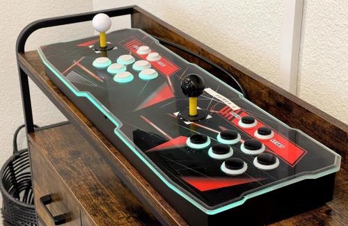 Food & DrinkTea/Coffee makerBathroomShower, Shampoo, Towels, Toilet paper, Conditioner, Hairdryer, Toilet, Body soap, Private bathroomMedia & TechnologyFlat-screen TV, Video games, Game console, TVGeneralHeating, Carbon monoxide detector, Fan, Private entrance, Fire extinguisher, Iron, Air conditioning, Trash cans, Hardwood or parquet floors, Smoke AlarmKitchenCleaning products, Kitchen, Dryer, Oven, Dining table, Coffee machine, Washing machine, Stovetop, Wine glasses, Microwave, Dishwasher, Refrigerator, ToasterLiving AreaSofa, Desk, Dining area, Sitting areaOutdoorsOutdoor furniture, Private pool, Terrace, Outdoor dining area, Patio, BarbecueViewView, Pool viewBedroomWardrobe or closet, LinensBuilding CharacteristicsDetachedRoom AmenitiesClothes rackEntertainment & Family ServicesBooks, DVDs or music for children, Board games/puzzlesPool and SpaPool towels, Saltwater pool, Heated pool |