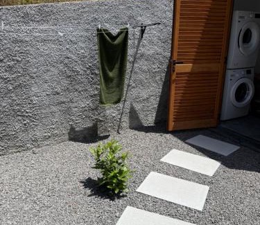 Food & DrinkTea/Coffee makerBathroomBody soap, Shower, Hairdryer, Toilet paper, Private bathroom, TowelsMedia & TechnologyFlat-screen TV, TVGeneralIron, Tile/Marble floor, Private entrance, Fire extinguisher, Air conditioning, Trash cansKitchenCoffee machine, Stovetop, Kitchenware, Cleaning products, Washing machine, Toaster, Oven, Refrigerator, Dining table, Microwave, Dryer, Kitchen, Wine glasses, Electric kettleLiving AreaDining area, Sitting area, Desk, SofaOutdoorsOutdoor furniture, Outdoor dining area, PatioViewMountain view, Garden view, ViewBedroomLinensAccessibilityEntire unit wheelchair accessible, Entire unit located on ground floorBuilding CharacteristicsDetachedRoom AmenitiesSocket near the bed, Clothes rack, Drying rack for clothingPool and SpaShallow endPhysical distancingSingle-room AC for guest accommodation |