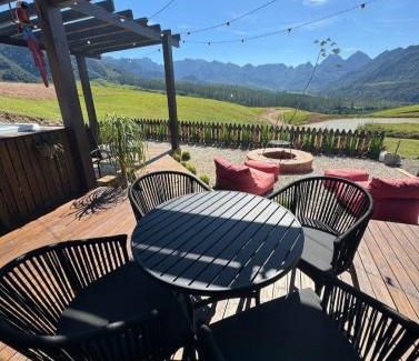 Food & DrinkMinibarBathroomPrivate bathroom, Shower, Toilet paper, Bathrobe, Toilet, Towels, BathtubMedia & TechnologyTV, Flat-screen TVGeneralTrash cans, Heating, Air conditioningActivitiesHot tubOutdoorsTerrace, Barbecue, Balcony, Outdoor dining areaKitchenKitchenware, Microwave, Coffee machine, Stovetop, Kitchen, Dining table, Wine glassesViewMountain view, ViewLiving AreaDining areaBedroomLinensRoom AmenitiesSocket near the bed |