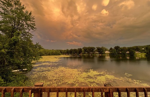 Welcome to our charming Upstate New York lake apartment, where nature's beauty meets cozy comfort. Situated on the shores of a serene lake, you'll be surrounded by a kaleidoscope of red, orange, and gold hues as the trees transform for the season. Step outside onto the expansive deck and experience the true magic of the season. Sip your morning coffee while the mist rises off the lake, or gather around the fire pit as the sun sets, casting a golden glow over the water.