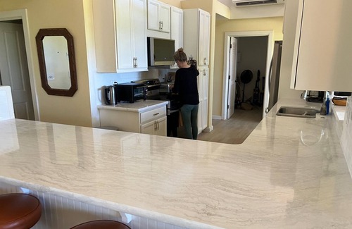 We were extremely fortunate to acquire the Anatolia Beach House on August 24, 2022. There were existing guests who departed the last week in September. Since then, we've replaced the carpets with tile, installed new air conditioning,, solar panels& batteries (to keep power on during power failures), New 'Cambria' kitchen counters, added new organic cotton linens, new dishes (Fiestaware) silverware and cookware, new furniture, Improved the landscaping and fencing.