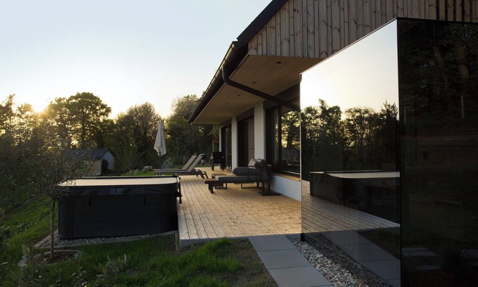 Relax with your loved one in front of the fireplace, recharge your batteries in your private mirror sauna, or unwind in the outdoor whirlpool under the starry sky.