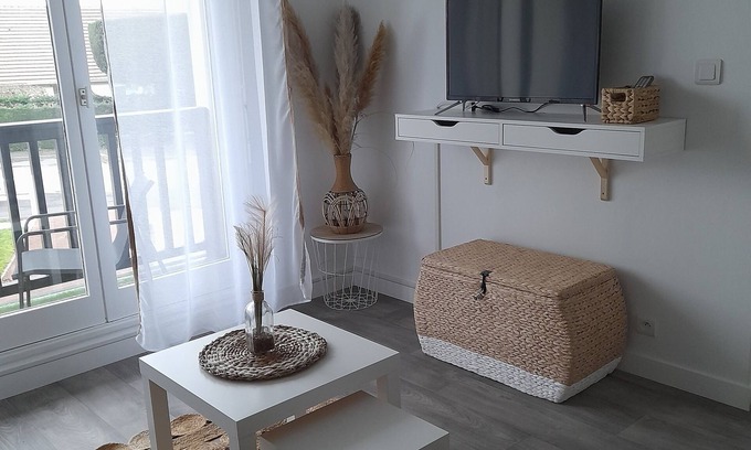 Refurbished T2 apartment with balcony is located in Villers-sur-Mer. Refurbished T2 apartment with balcony provides accommodation, featuring TV, Balcony/Terrace, Security/Safety, among other amenities. This Apartment features TV, Balcony/Terrace, Security/Safety, to make your stay a comfortable one.