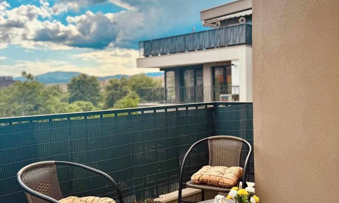 Sunny apartment with a great location in the center of Blagoevgrad. The apartment has 2 balconies, 2 bedrooms, 2 bathrooms, a living room and a well-equipped kitchen with a fridge, oven and dishwasher. Towels and bed linen are available in the apartment. Guests benefit from private parking available on site and free WiFi. The air-conditioned accommodation is a minute away from AUBG campus, plenty of cafes, markets and shops around. Cozy place, welcoming to couples, families and business stays.
