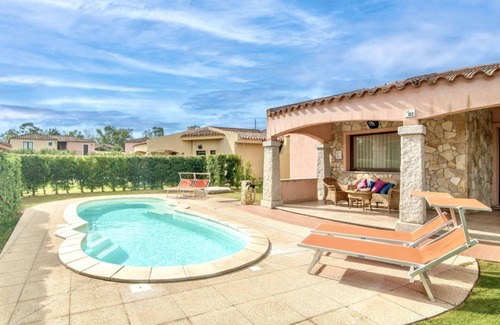 Yes, this Costa Rei villa has a swimming pool. Check the Facility Overview section for details about the pool and other available facilities.