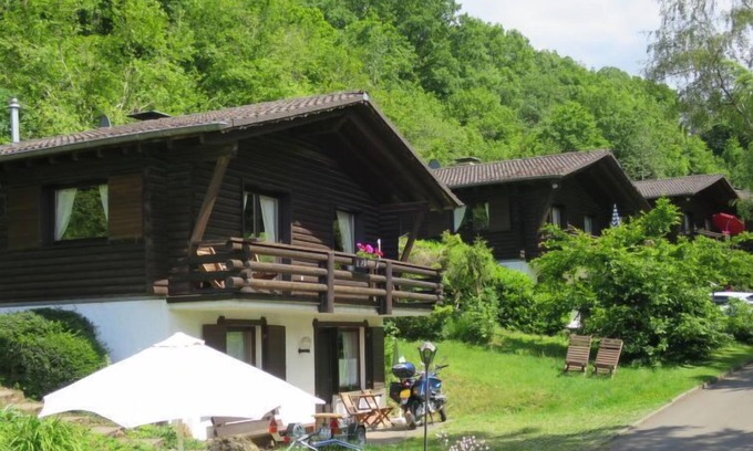 Small, rustic holiday village "Reinskopf", surrounded by trees and meadows. On the outskirts, 900 m from the centre of Schönecken, in a quiet position on top of a hill, 20 m from the edge of the forest, 25 km from the lake, 20 m from the stream. For shared use: park 1 ha, lawn for sunbathing 400 m2, pond. Table tennis, volleyball, patio (30 m2), barbecue, children's playground (slide, swing, sandbox). In the complex: reception, central heating system, washing machine (extra), tumble dryer (for shared use, extra). Parking at the house. Central parking spaces. Grocery 1 km, supermarket 1 km, shopping centre 10 km, restaurant 750 m, bar 10 km, bakery 1.2 km, café 1.2 km, bicycle rental 10 km, bus stop "Schönecken" 1.5 km, outdoor swimming pool 11 km, indoor swimming pool 11 km, bathing lake 20 km. Golf course (18 hole) 14 km, tennis 10 km, riding stable 10 km, walking paths from the house 20 m, cycle lane 5 km, slopes 12 km. Nearby attractions: Burgruine Clara Costa, Schönecker Schweiz, Altburgtal. Well-known lakes can easily be reached: Vulkanmaare 25 km. Please note: car recommended. The photograph shows a typical example. The photo is just an example. All houses/apartments are individually designed/furnished. The holiday village consists of eight holiday homes, each with two apartments. There is also a playhouse for small children that can be shared (free of charge).