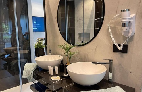 Guests can enjoy the outdoor swimming pool with panoramic views, as well as a mini hydromassage pool available in deluxe suite rooms. The sun terrace and garden offer additional spaces to unwind and soak in the natural beauty of the surroundings.