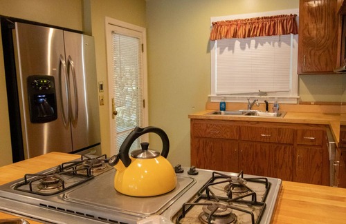 Spacious and private 5,000 sq.ft. house with four large bedrooms - sleeps maximum of 13 (king with trundled day bed, king with sleeper chair, queen with trundled day bed, twin beds). Great room with dining, all glass sunporch with seating, dining, games. Deck, porches, balcony & many windows offer great views. Fully equipped modern kitchen, refrigerator with ice maker, dishwasher, microwave, washer & dryer. TV with Blue-Ray, boom box with CD, foosball table, bumper pool/game table. Outdoor gas grill & 2 picnic tables. Linens are proved. Private & easy access to the river with flat grassy area. No pets. No smoking.