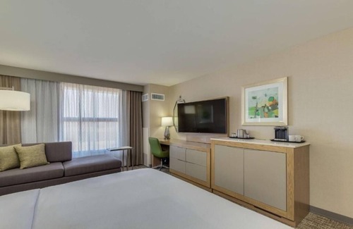 ✦ Your room is 335 sq. ft, equipped with complimentary toiletries, high definition 55-inch TV, available with Premium cable, and Standard cable.