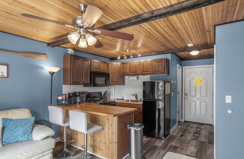 Step inside and enjoy all the comforts of home. The full kitchen includes a refrigerator, stove, oven, and microwave, perfect for preparing your favorite meals. The living room features a loveseat and a 4-top dining table for relaxing or enjoying a meal together. One bedroom is equipped with a king-size bed and TV, while the second bedroom offers a comfortable queen-size bed. The bathroom includes a tub/shower combo for your convenience.
