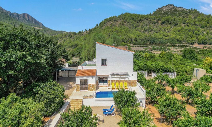 Enjoy this charming villa surrounded by orange groves in a valley open to the Mediterranean. Unwind with total privacy in nature. Ideal for families or small groups seeking disconnection and tranquillity.