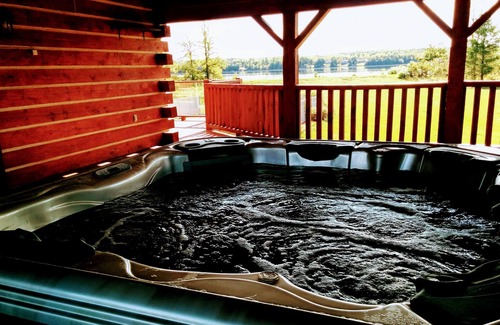 Located on Graham Lake, this stunning 5+ bedroom custom built wood home