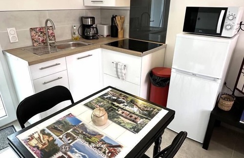 Our cottage, in the heart of the village, enjoys an ideal location for exploring the Landes Ocean region, the Basque Country, and Spain. We are close to the Landes beaches, between the countryside and the ocean, 10 minutes from Bayonne and 20 minutes from Biarritz. The wonderful and vast Landes beaches, the dunes, the proximity of the Basque Country mountains, the area's pretty historic towns, the rolling hills, and not forgetting the banks of the Adour River offer numerous opportunities for discovery. Walks or bike rides in the forest, discovering surf spots, tasting local culinary specialties... the possibilities are endless, the activities are endless. Our cottage is a rental adjoining the owner's home. It has a separate entrance and a private terrace offering breathtaking views of the nature and countryside. Outside, a table with chairs and an electric barbecue are available. This single-story one-bedroom apartment comprises: - a living room with a relaxation area (sofa bed for an additional person), a kitchen area (induction hob, extractor hood, microwave, mini-oven, refrigerator with freezer compartment) - a bedroom with a double bed - a bathroom with a walk-in shower and toilet. For your comfort, bed linens, towels, linens, end-of-stay cleaning, as well as water, electricity, and heating are included. Baby equipment (travel cot and high chair) can be provided upon request. Shuttle to Ondres beach is 500m away in July/August. Public transport stops to Bayonne, Anglet, and Biarritz are 50m away.
