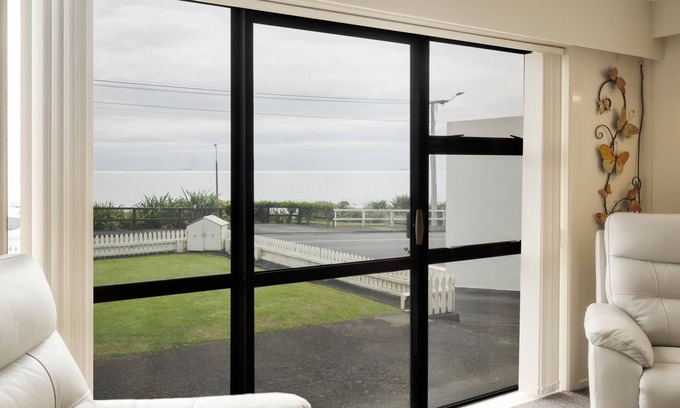 Outside, relax and soak in the views across the Coastal Walkway to the Tasman Sea. Additional features include off street parking, unlimited Wi-Fi, Smart TV, books and much more!