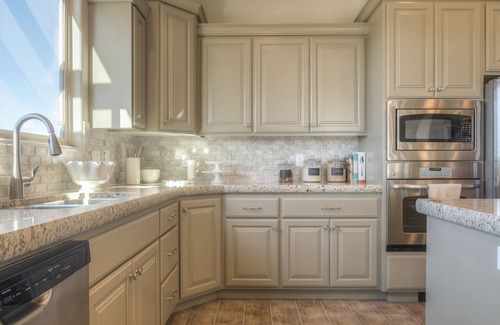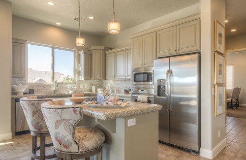 Amenities include; Flat screen smart televisions, Bluray/DVD players, high speed wireless internet, Fully stocked kitchen, Gas BBQ Grill, Dishwasher, Microwave, Refrigerator with ice maker and water dispenser, Washer and Dryer, Office desk area, Queen sleeper couch, Master Bedroom with a king bed walk in closet, master bath, Bedroom 2 with queen bed, Bedroom 3 with 2 bunk beds full on bottom twins on top (sleeps 6), 2nd bathroom, luxury bedding, two car garage.