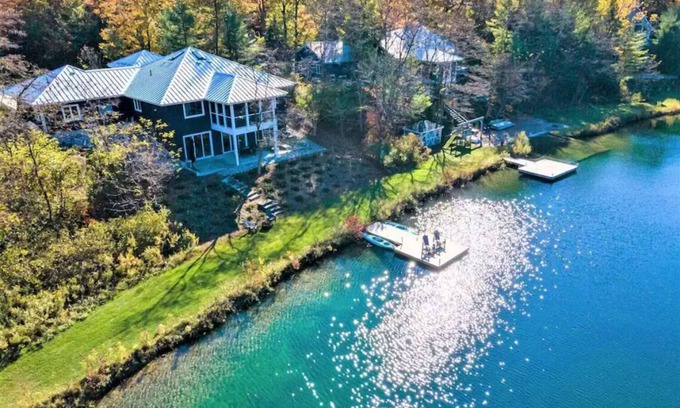 A beautiful home nestled in a quiet and private subdivision in Grand Bend, Ontario. Minutes from Main Street and beach, enjoy the peace at a private lake. This executive home is fully loaded for your enjoyment. Kayaks and paddleboards to fill your days with exercise and enjoyment. Relax with a book and a beverage in one of the two sunrooms, on the back porch, or on the dock.