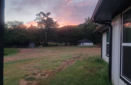 If you enjoy the country, then this is the place for you! Ths new, fully furnished, tiny home, on almost 5 acres, was built to share with those that just need a break from the busy hustle and bustle of life! This place has it all! Beautiful sunrises and sunsets, a pond with playful ducks, room to fly a kite with your kids, or push them on the saucer swing, have a picnic, or just read on the front porch. At night, just listening to the sounds of crickets, frogs and cows can be therapeutic. Stargazing on a blanket in the middle of a field is magnificent and you can literally walk the property without light on a full moon!
