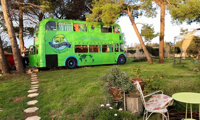 A group of artist live on the rest of the one hectare land in their camion and campers as we are in our double dekka bus. We have an outdoor communal kitchen where if you feel the desire to meet, you will be welcome.