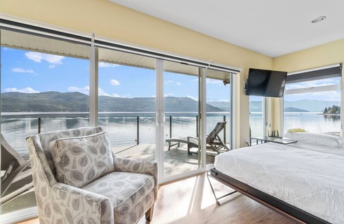 Step into the spacious 4BR 2Bath beachfront oasis nestled on the shores of the majestic Shuswap Lake. Take in the breathtaking mountain and lake views from private outdoor areas, work on your vacation tan by the beach, or unwind with your loved ones in the sun-soaked living area.