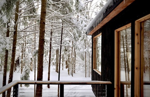 Escape to this modern cabin nestled in the woods on a serene lake. With its cozy layout and large windows overlooking the lake and into the forest, you'll feel right at home surrounded by nature's beauty. Enjoy breathtaking views of the dark sky at night and wake up immersed in the peaceful sounds and views of the National Forest. Spend your days relaxing in the hammock, watching the birds on the lake, making s’mores over the fire and listening to the loons. Explore endless adventures with hiking, ATV, and snowmobile trails just steps away. Unwind on the deck, savoring the tranquility of this hidden gem. Book your getaway now and experience the ultimate retreat.