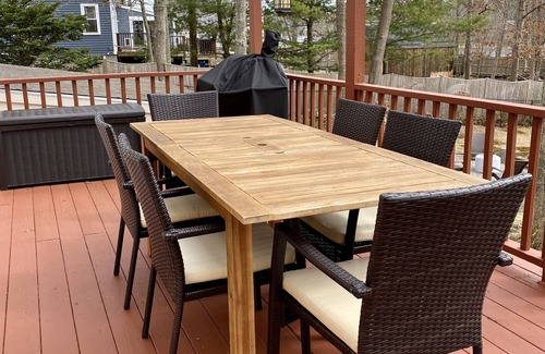 Relaxation awaits at this spacious pond front home in the Forestdale section of Sandwich on beautiful Cape Cod. Enjoy the outdoors on any of our three decks, in the yard, or around the fire pit. A kayak and a stand up paddle board are available for use in the pond.